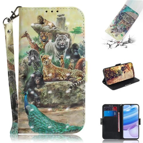 Para Xiaomi Redmi 10X 5G 3D Patrón Pintado Atracción Magnética Funda de Cuero con Tapa Horizontal con Soporte y Ranura para Tarjeta y Billetera y Cordón (Zoológico)