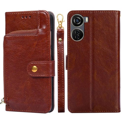 Funda de Cuero con Cremallera para ZTE Axon 40 Lite (Marrón)