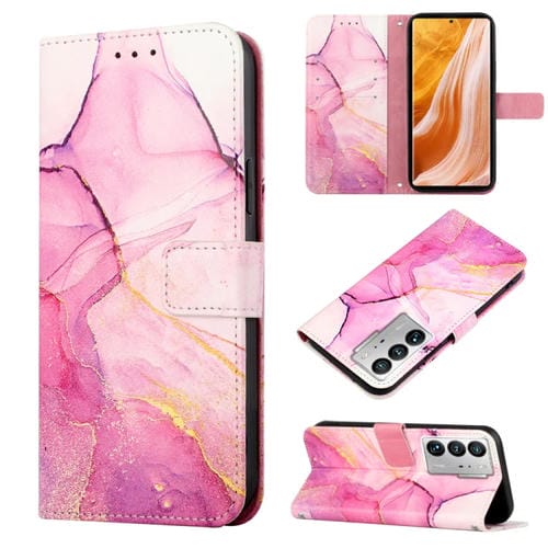 Funda para ZTE Axon 40 Ultra Pt003 con Tapa de Cuero y Patrón de Mármol (Rosa Púrpura Dorado)
