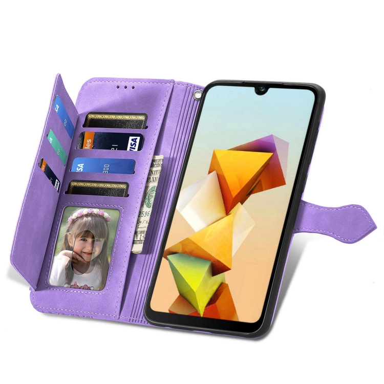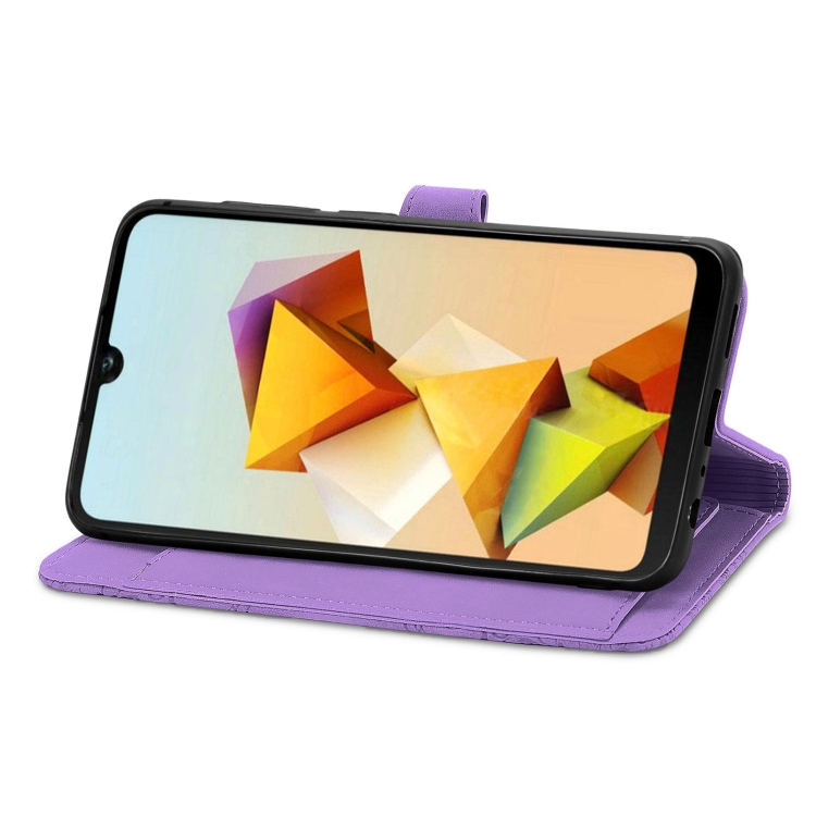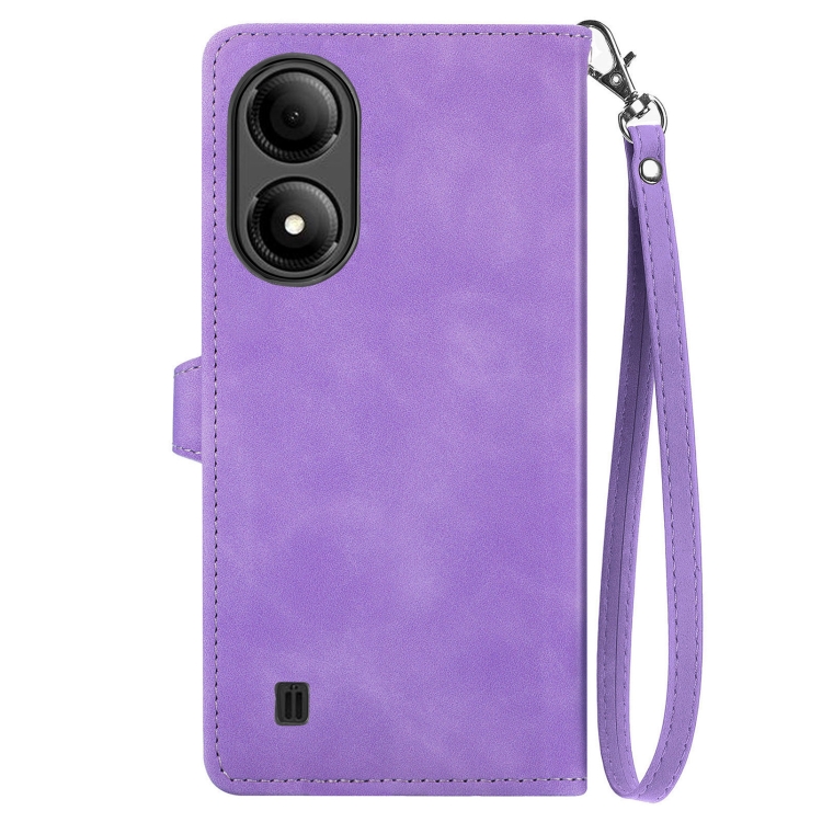 Funda de Cuero para ZTE Blade A33S con Cremallera y Flores en Relieve (Púrpura)