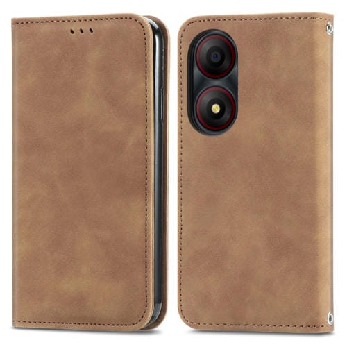 Funda de Cuero con Tapa Magnética para ZTE Blade A34 Retro Skin Feel (Marrón)