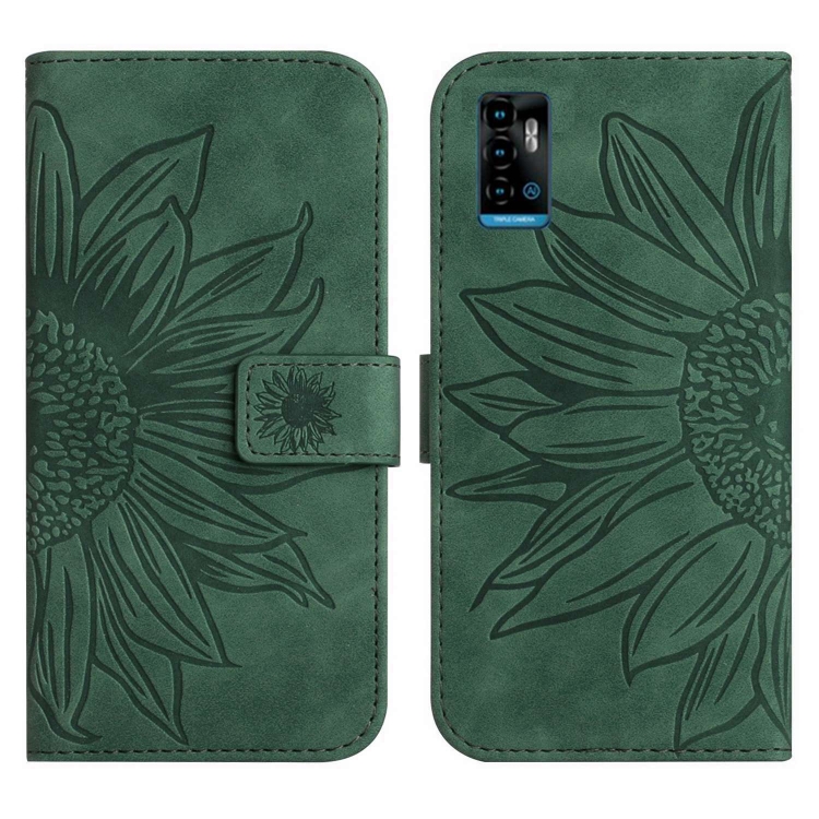 Funda Flip de Cuero ZTE Blade A71 Skin Feel con Cordón y Diseño Sun Flower (Verde)
