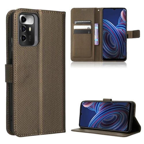 Caja de teléfono ZTE Blade A72 5G Cuero Textura de Diamante (Marrón)