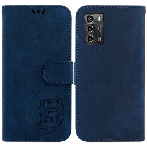 Funda de Cuero en Relieve para ZTE Blade A72 / V40 Vita Little Tiger (Azul Oscuro)