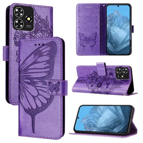 Funda de Cuero para ZTE Blade A73 4G con Mariposa en Relieve (Púrpura)