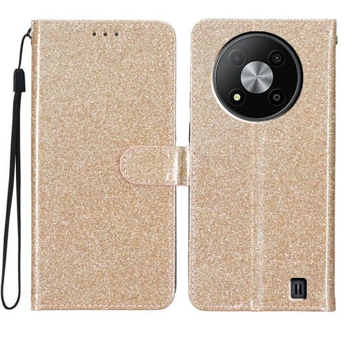 Funda de Cuero para ZTE Blade A73 5G con Tapa En Polvo Purpurina (Dorado)