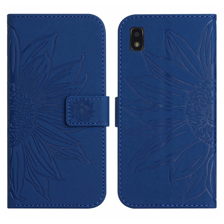 Funda Flip de Cuero ZTE Blade L210 Skin Feel con Cordón y Patrón Sun Flower (Azul Oscuro)