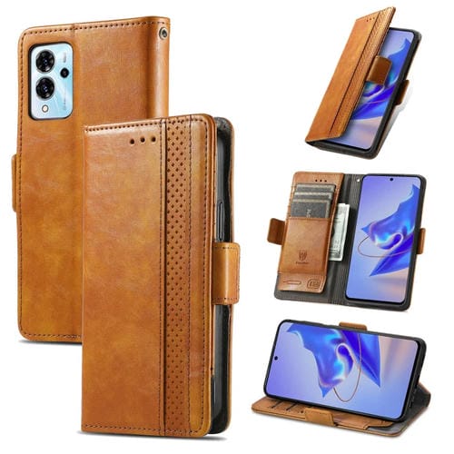 Funda de Cuero Caseneo Splicing Dual Magnetic Hebilla para ZTE Blade V40 Pro (Caqui)