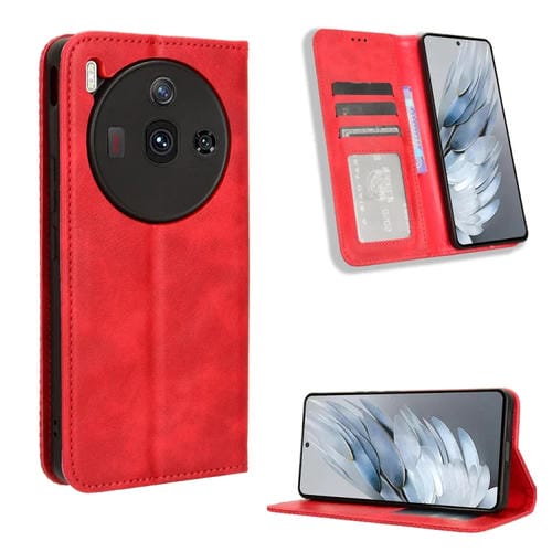 Funda para ZTE Nubia Z50S Pro de Cuero con Textura Retro y Hebilla Magnética (Rojo)