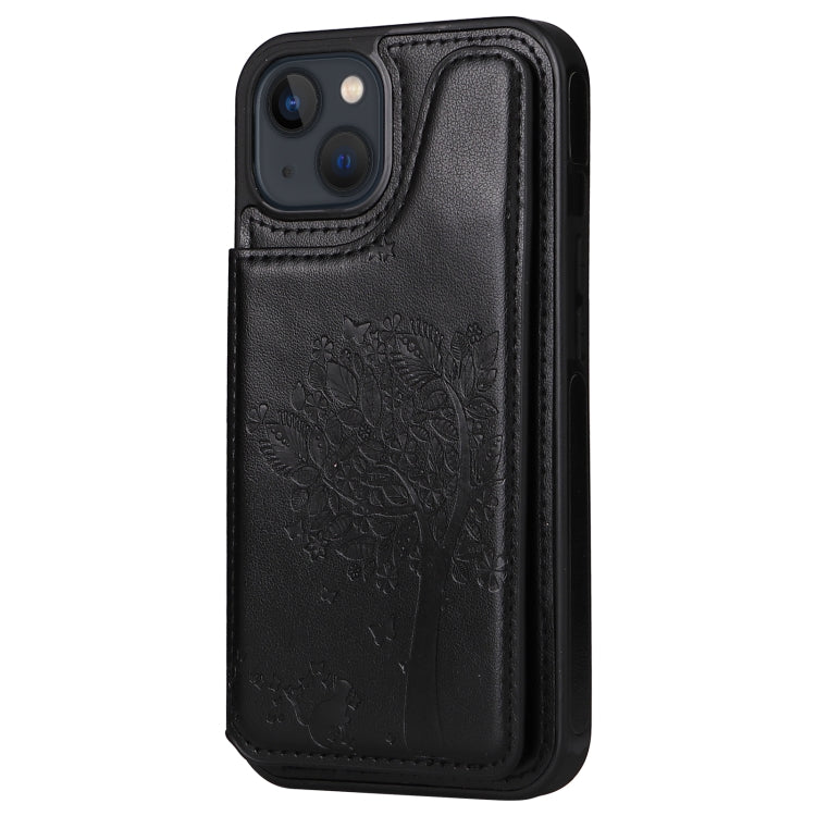 Estuche a Prueba de Golpes para iPhone 13 Mini Patrón Estampado Árbol de Gato (Negro)