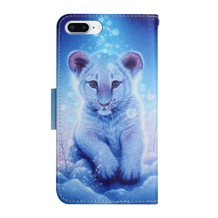 Funda de Cuero Horizontal con Soporte y Ranura para Tarjeta y Billetera para iPhone 8 Plus y 7 Plus (Little Leopard)