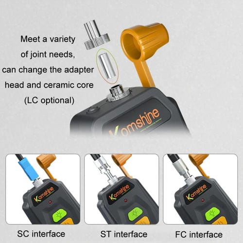 La pluma de luz roja Komshine KFL-Q-20mW Mini es un dispositivo profesional diseñado para la Prueba y posicionamiento preciso de puntos de interrupción en fibras Ópticas. Compatible con interfaces SC, ST y FC, este equipo permite realizar mediciones de distancia de hasta 15 km, facilitando la detección y localización de fallos en redes de fibra Óptica. Su diseño compacto y ligero, junto con un cabezal láser de diodo (LD) que emite luz estable en una longitud de onda de 650 nm, garantiza una operación sencilla y eficiente para Técnicos y usuarios que reparan por cuenta propia. Además, incorpora funciones de ahorro energético y una Linterna LED de alto brillo para facilitar trabajos en condiciones de baja iluminación.
