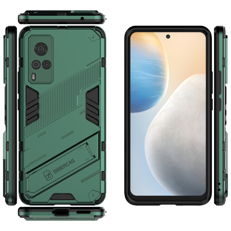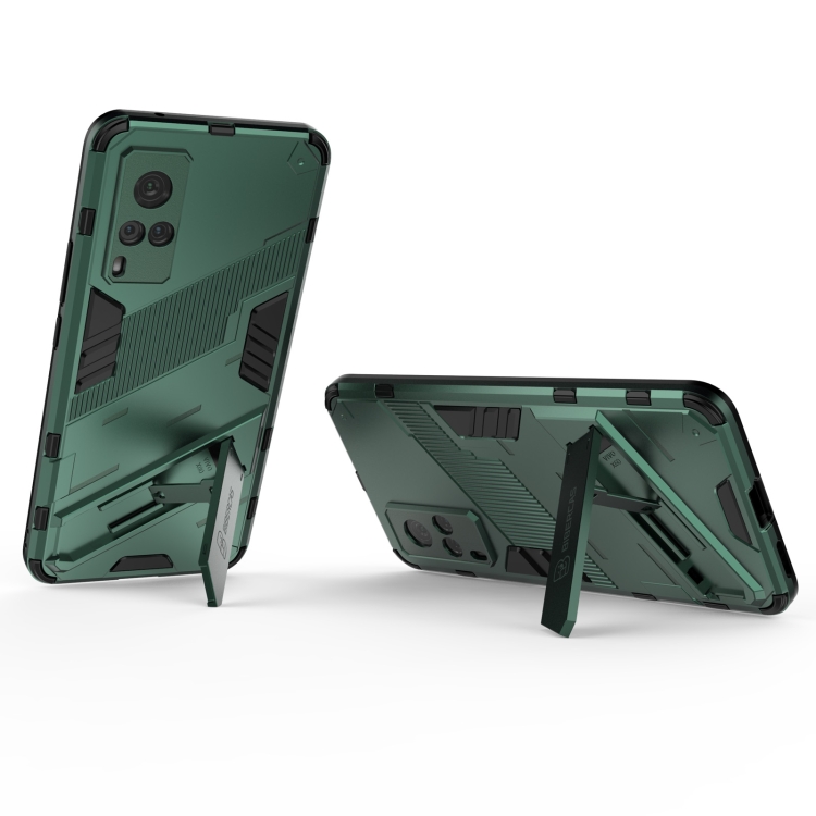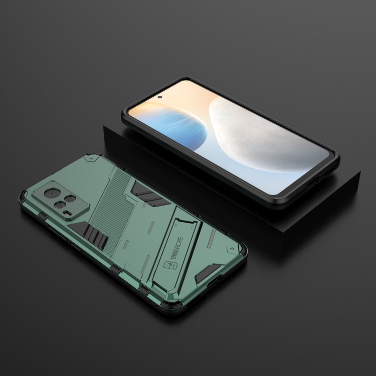 Punk Armor 2 En 1 PC + Estuche a Prueba de Golpes de TPU con Soporte Invisible para Vivo X60 5G (Verde)