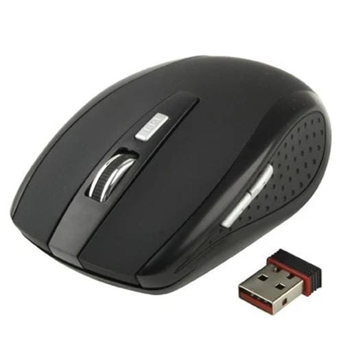 Ratón Óptico Inalámbrico 6D 2.4 Ghz 800-1600 Dpi con Mini Receptor USB Plug and Play Distancia 10 Metros (Negro)