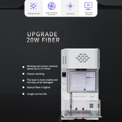 El Separador de Láser Automático TBK 958F 20W 1064Nm con enchufe del Reino Unido es un equipo especializado diseñado para la separación precisa de Tapas Traseras y Cristales de Teléfonos Móviles sin necesidad de desmontar Completamente el dispositivo. Cuenta con un láser de fibra de 20W de potencia y una longitud de onda de 1064 nm, que permite un marcado y grabado seguro en objetos no transparentes, como las Cubiertas Traseras de diversos modelos de smartphones. Su sistema de abrazadera de centrado automática facilita la sujeción del Teléfono, mientras que su Computadora integrada con software incluido proporciona un enfoque automático, eliminando la necesidad de mediciones manuales. Compatible con múltiples modelos de Teléfonos, incluyendo Apple (8, X, 11, 12 series), Samsung, Huawei, Oppo, Vivo, Xiaomi y LG, este separador ofrece una solución eficiente para usuarios que reparan por cuenta propia o talleres técnicos que requieren un proceso seguro y preciso para la reparación o modificación de dispositivos Móviles.