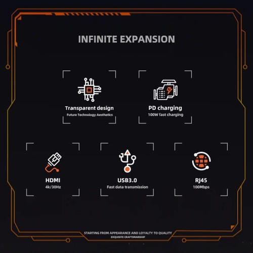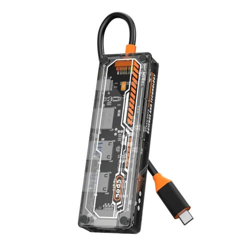 - Interfaz de salida HDMI 4K a 30Hz, RJ45 a 100Mbps, PD3.0 con potencia de hasta 100W y transferencia de datos 2 en 1, USB 3.0 con velocidad de 5 Gbps, USB 2.0 a 480 Mbps; dimensiones 114x36x17,1 mm; peso 71 g; Cable PVC de 145 mm