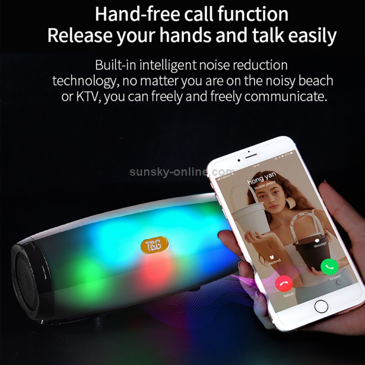 Altavoz portátil T&G Tg165 5W * 2 inalámbrico con luz led mp3 aux usb radio fm subwoofer estéreo (Verde)