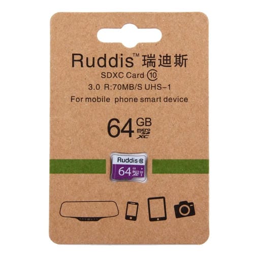 - 1x Tarjeta de Memoria Ruddis 64GB Class 10 TF Micro SDXC UHS-1 (U1) High Speed