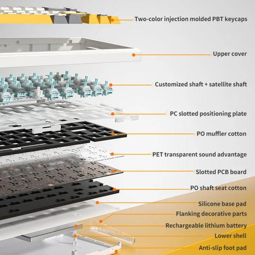 • 1x Teclado Mecánico Aula F65 de 67 Teclas con Bluetooth, 2,4G y Cable, RGB Gaske (Eje Negro, Amarillo y Azul)